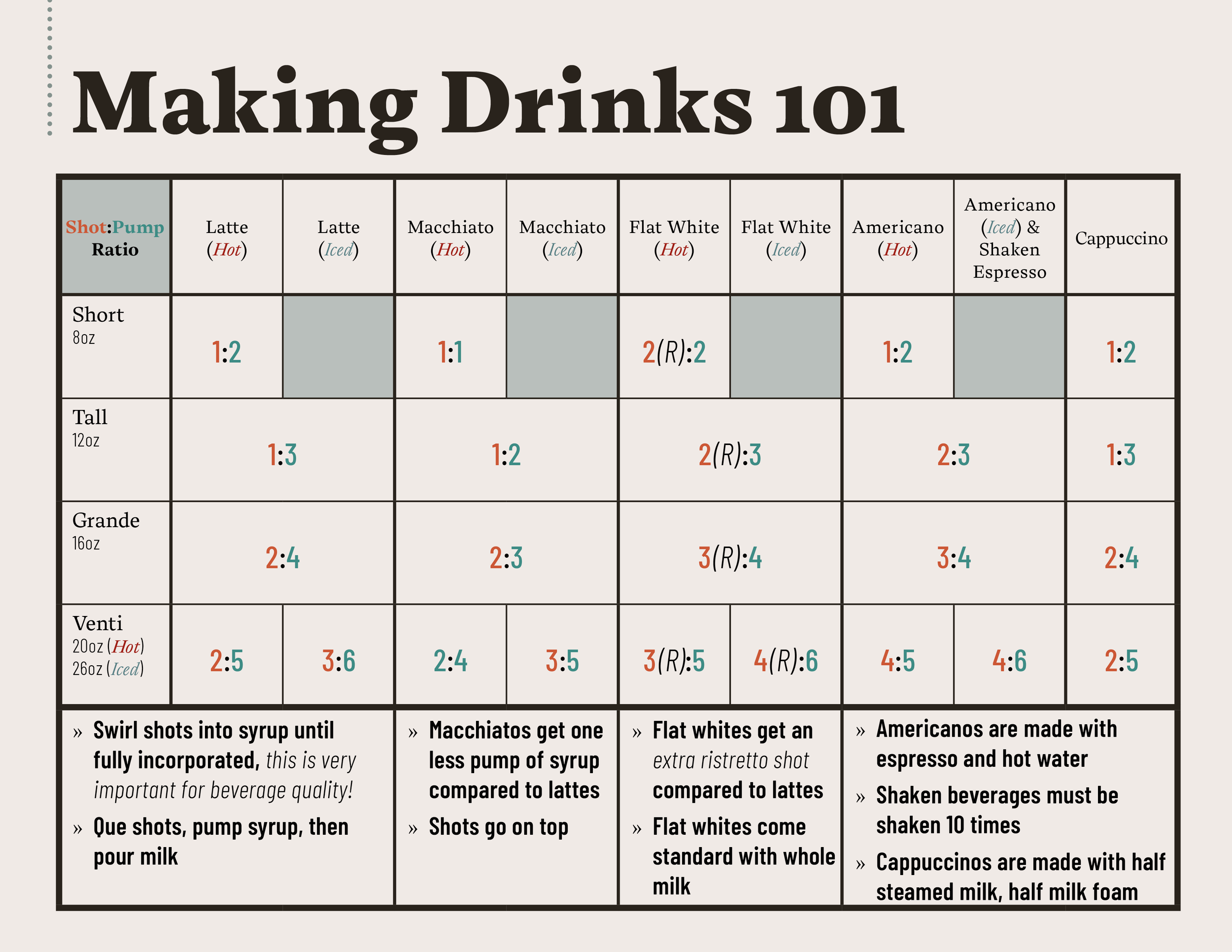 Using my knowledge of Layout Design and Adobe InDesign skills, I create these prep sheets for a coffee shop to use daily. The goal was to make sure the information was clear and concise, while utilizing a color palette consistent with the coffee shop’s existing brand. All of these were created with the intention of being printed on 8.5 x 11 for them to be handed out to all baristas, or quickly printed off in the office